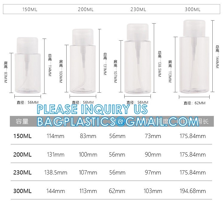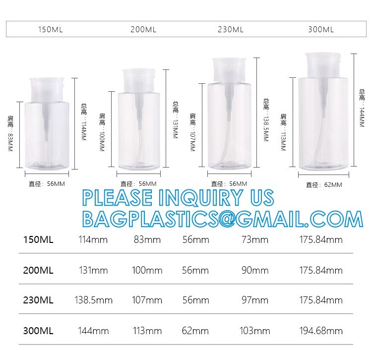 بطری پاک کننده لاک ناخن، پمپ الکل پمپ فشاری، ظروف خالی استون آرایشی